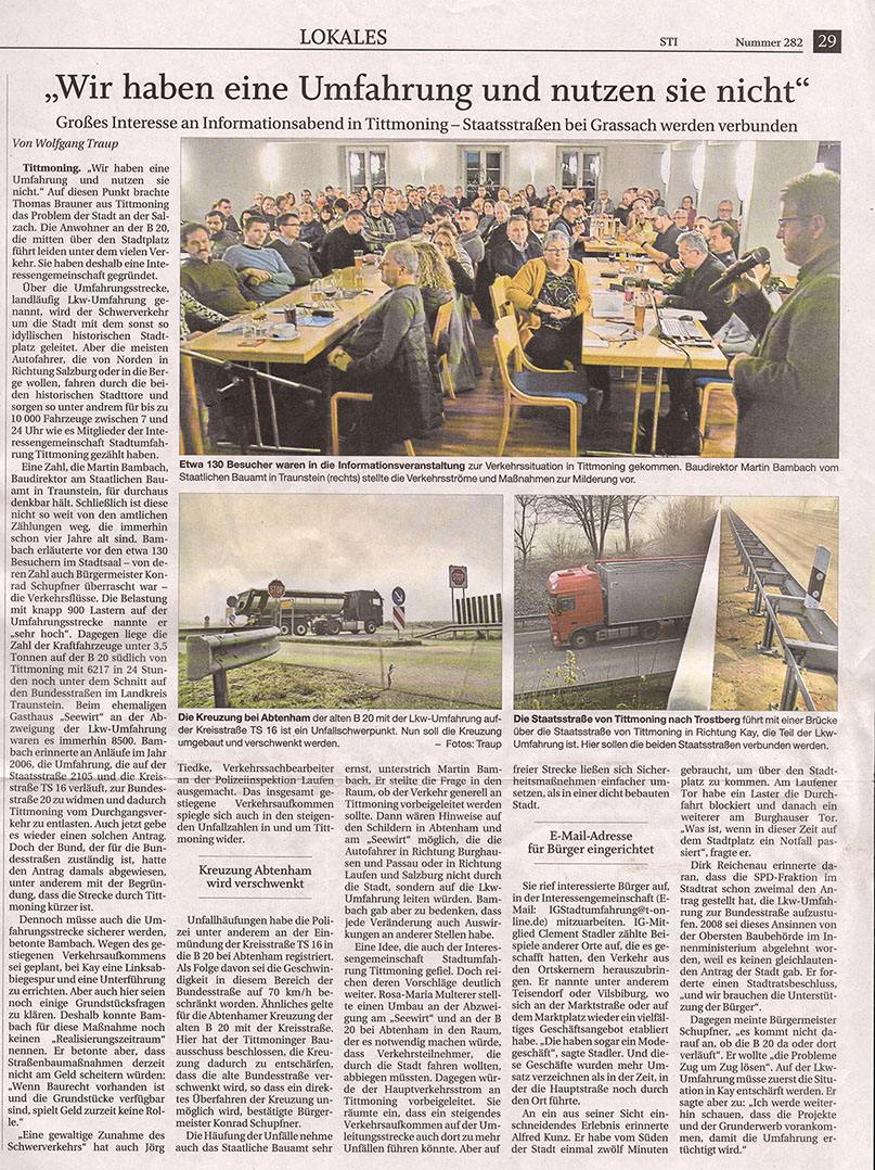 IG Stadtumfahrung-Tittmoning zieht Bilanz und plant Anlieger-Erfahrungsaustausch